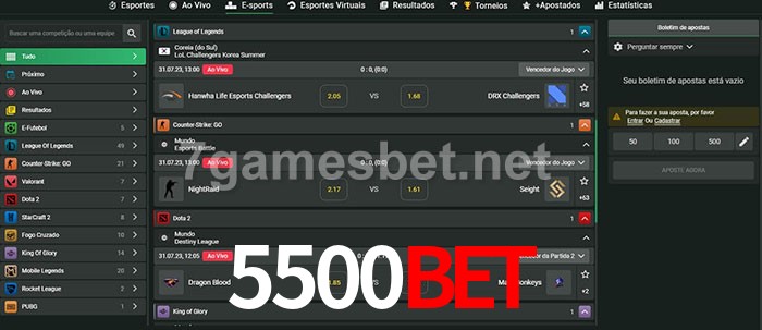 O 5500bet oferece uma grande seleção de opções de apostas em e-sports com probabilidades competitivas